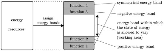 Concept of allocation of virtual BESS for each function on the example of assignment of energy bands for each function in a specific time slot. The grey color marks the reserved energy band of corresponding functions.