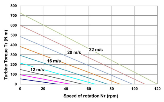 This model was used to deduce torque/speed (Figure 2) and power/speed (Figure 3) characteristics for wind speeds ranging from 6 m/s to 22 m/s.