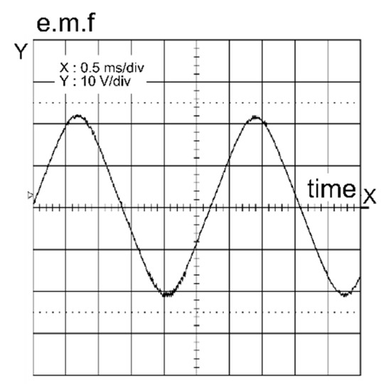 A particularity of the Vernier machine is that its fem is sinusoidal. There is an e.m.f. of the prototype on Figure 6.