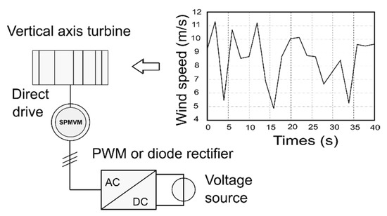 Concurrently with the increasing existence of wind farms offering power of several megawatts [1], the expansion of small wind turbines can also be observed, with power ranges from 1 to 50 kW [2,3,4]. When associated with other energy sources, these turbines can provide a self-sufficient supply of power for a home or remote location. As such, they avoid costly, or even impractical, connections to the grid, which can actually be a significant source of energy loss with regard to the power transmitted over the line.