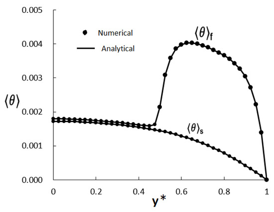 As it was mentioned before, Da and Hg are Hagen and Da numbers and their definitions are given by Equation (3). The solution for energy equation is a little bit complicated. In the first step, the dimensionless solid and fluid phase equations (Equations (9) and (10)) are added to each other and the following equation is obtained.