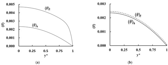 where and are effective thermal conductivity of the fluid and solid phases while is clear fluid phase thermal conductivity. By taking the integral of the above equation and applying boundary conditions presented by Equation (12), the dimensionless fluid temperature equation in terms of the dimensionless solid temperature can be obtained.