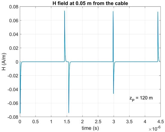 H field at a distance 0.05 m from the cable at point P with zP = 38 m, close to the PD source.