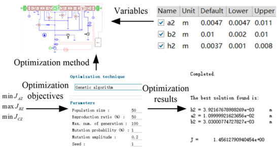 Considering all the performance indexes, the optimization objectives of the system were as follows: (1) Minimum energy consumption; (2) maximum effective working range of valve spool; and (3) minimum the flow regulation bad point value. The optimization model was established as follows: