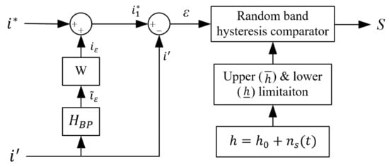 In this approach, the uniform current harmonic spectrum is disturbed for HRSRM to reduces the stator vibration and speed ripple which causes acoustic noise. Figure 4 provides examples of current waveforms with different bandwidths, where is the reference current, is the output current. The hysteresis band (h) is determined by the mean value of random signal () which various with time (t) [50].