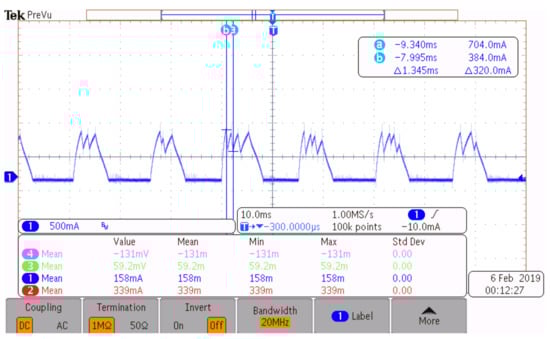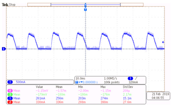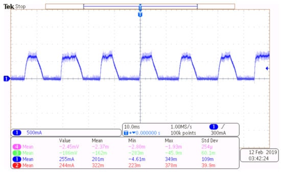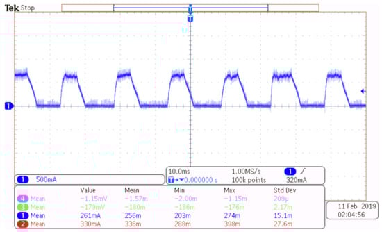 The deviation () passes through the random-band hysteresis comparator to generate the switching control signal (S). Major identified the major vibration frequency as 1.43 kHz and designed the bandpass filter with the center frequency of 1.43 kHz, quality factor Q = 1.428 and bandwidth 1.0 kHz (center frequency/Q). The current control diagram is shown Figure 5.