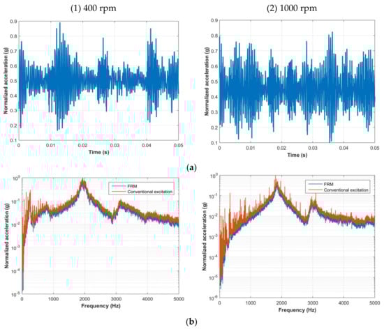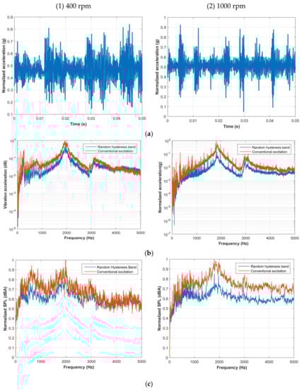 The four power electronic approaches were tested on the experimental setup described in Section 4 at 400 and 1000 rpm. Comparative results are provided to show the impact of the power electronic methods on the NVH performance of motor followed by a dedicated section discussing the results obtained.