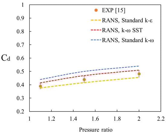 Effect of pressure ratio on the discharge coefficient of the baseline labyrinth seal. Cd—discharge coefficient.