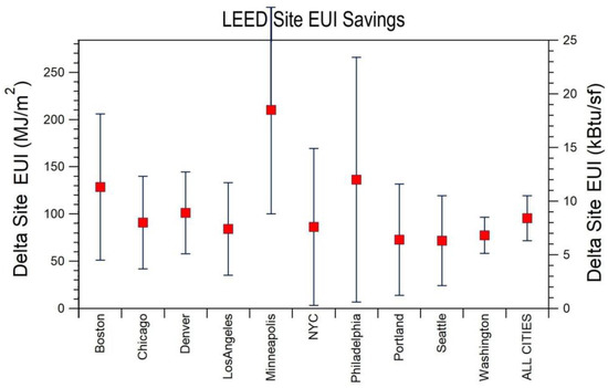 In 2006 the USGBC contracted with the New Buildings Institute (NBI) to conduct a study that would address this question for LEED-certified buildings. NBI obtained energy data volunteered for 121 LEED buildings (22% of those eligible at the time) and concluded they were, on average saving 25–30% energy [10]. NBI, however, found limited correlation between the projected and measured energy savings for individual buildings. The NBI study was met with considerable criticism [11,12,13]. Newsham et al. provided an alternate analysis of the NBI data, finding average LEED savings from 18–39% while noting that roughly 1/3 of the LEED buildings used more energy than their conventional counterparts [14]. Scofield analyzed the NBI data and concluded that LEED buildings were saving only 10–15% in site energy but found no evidence for source energy savings or reduction in GHG emissions [12,15].