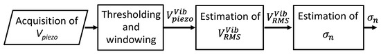 According to the main target of this work, this subsection focuses on the procedure developed to estimate the level of noise, more precisely the standard deviation, σn, from the device’s output voltage signal (the piezoelectric output voltage), V_piezo.