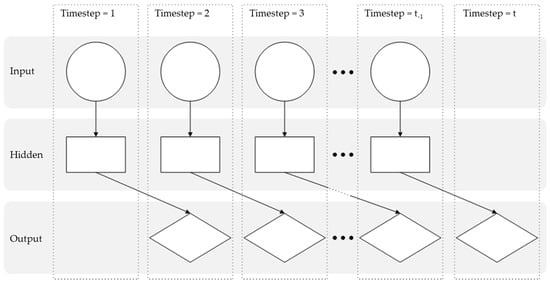 In addition, since the ANN model predicted the future heating loads using current input data, the datasets were arranged. The temporal scale of the predicted heating loads was set as the next timestep (10 min). Figure 4 is the timestep of the input values and target values of the ANN model designed in this study.
