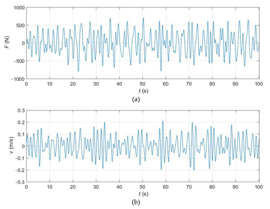 Numerical time series of the: (a) force input; (b) heave velocity response.