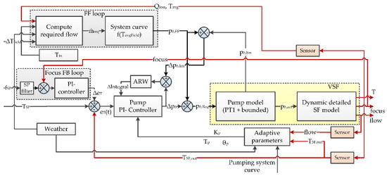 Figure 2 where all three control components are shown, namely, the flow FF loop, the temperature FB controller and, finally, the focus FB (FFB) loop. The FFB controller does not directly control the pump; it, rather, alters the temperature error,