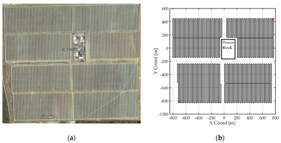 51] thermal oil is used as the HTF. For all the simulations performed in this study, a constant solar field inlet temperature of 290 °C is used. The plant has two molten salt (MS) tanks that are used for thermal energy storage; however, they, as well as the power block, are not simulated within this entire work. La Africana is equipped with two weather stations located in the NE and SW corners in the plant as indicated in