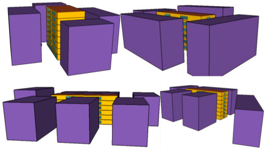 The geometrical model of the district buildings considered in this study was developed using the Google SketchUp TRNSYS3d plug-in [27] and is linked to the TRNSYS environment via Type 56, which allows the user to simulate the building’s thermal performance.