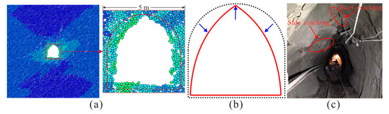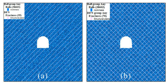 A numerical simulation calculation based on discrete element method (DEM) was carried out to further explore the deformation failure characteristics and factors influencing roadways with different engineering geological conditions. Numerical simulation has been an indispensable research method in the field of geological engineering because of its advantages of convenience, efficiency, and repeatability [23]. Furthermore, it can be an effective complement to the field survey and physical model test.