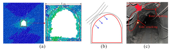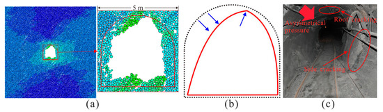 Mechanism: Plastic flow of surrounding rock on the roof is under high in-situ stress (Figure 10b);