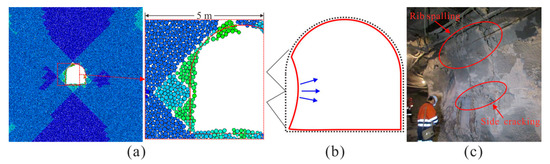 Mechanism: Tension failure of the surrounding rock on the two sides under high geo-stress (Figure 15b);