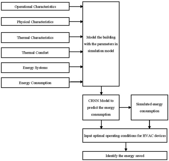 The architecture of the model is given in Figure 1, which assesses the energy-saving and thermal comfort in the case of commercial buildings with the HVAC system. The energy conservation investigates the thermal comfort and energy savings from the commercial buildings. The energy model in the commercial building uses a CRNN deep learning model that acts as an energy optimization tool in terms of the physical, operational and thermal features. This model is adjusted for achieving the rate of prediction between the original and predicted energy consumption.