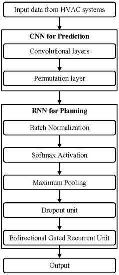 | 7: RNN makes the planning of future prediction, where the model incorporates the results of the classification (high-energy consumption or low-energy consumption devices for optimal operation of the HVAC devices). |