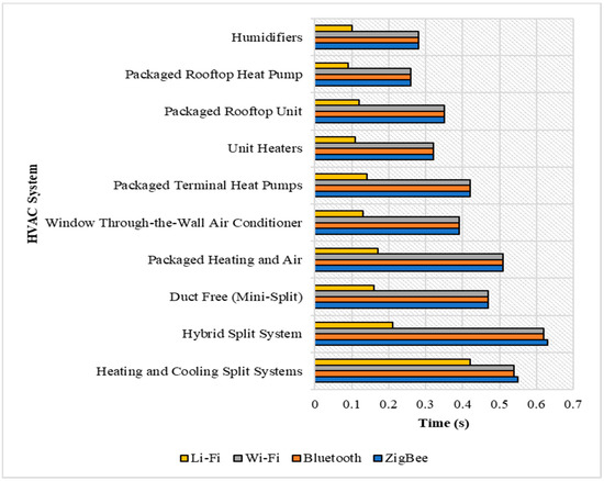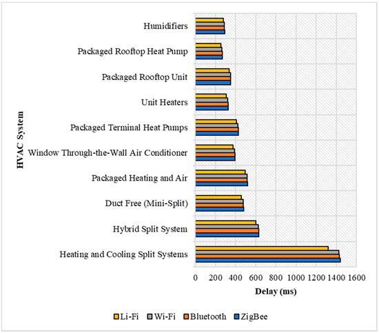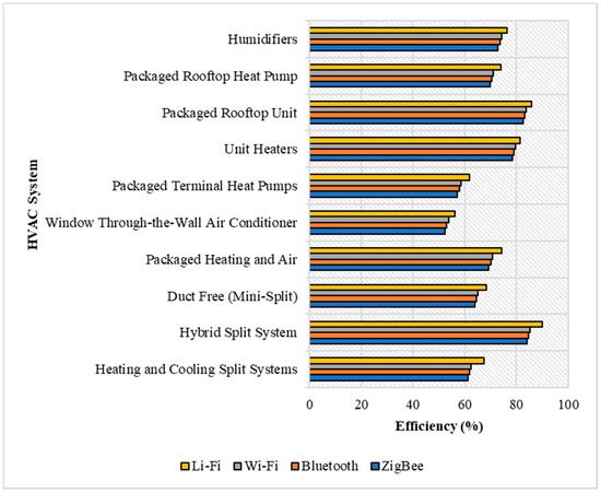With HVAC device installation and low interoperability, the Li-Fi communication protocols for home automation systems show reduced complexity compared to the other protocols. Li-Fi communication technology increased the rate of transmission in the home automation system. It facilitated faster data transmission with reduced latency and increased energy efficiency between the devices and a gateway. The comparison with other communication protocols like Wi-Fi showed improved communication with reduced latency and operation. This helps the HVAC devices in the home automation network to reduce the energy consumption due to its faster communication processing ability.