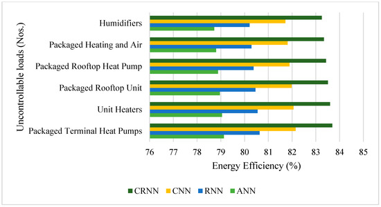 Energy efficiency (%) over various deep learning algorithms with uncontrollable loads.