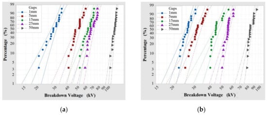 - Beroual, A.; Khaled, U. Statistical Investigation of Lightning Impulse Breakdown Voltage of Natural and Synthetic Ester Oils-Based Fe3O4, Al2O3 and SiO2 Nanofluids. IEEE Access 2020, 8, 112615–112623. [Google Scholar] [CrossRef]