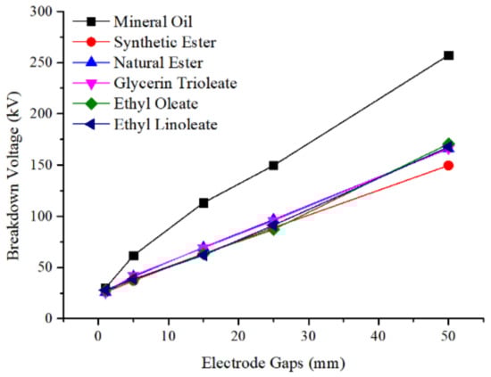 | Electrode Gaps/mm | Mineral Oil | Synthetic Ester | Natural Ester | Glycerin Trioleate | Ethyl Oleate | Ethyl Linoleate |