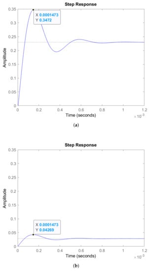 (a) Step response of due to = 0.02. (b) Step response of due to = 0.015.