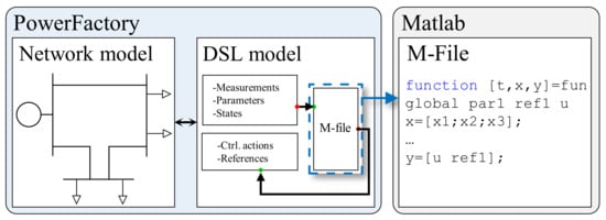 The PowerFactory BESS model (i.e., the controlled system model) is implemented as a standalone storage unit containing a DPL (DIgSILENT Programming Language) script with the Tremblay model equations and parameters to represent the IM20M battery.