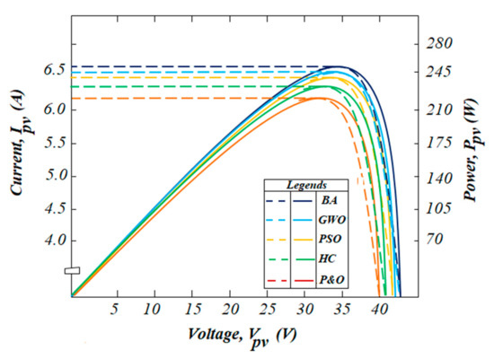 The analytical modelling of the SPV system is verified using I–V and P–V characteristics, displayed in Figure 3.