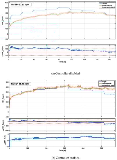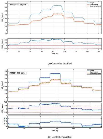 Figure 11 shows that the activation of the controller allows obtaining a general improvement in the emitted NO