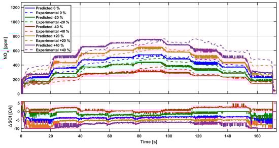 The results indicate that the controller works properly, since, when a higher concentration of NOx is demanded, SOImain is progressively advanced, and vice-versa.