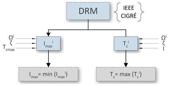 Existing dynamic rating models are mainly based on IEEE (Institute of Electrical and Electronics Engineers) 738 [14] and CIGRE (International Council on Large Electric Systems) TB601 [15] procedures. These procedures can be used to provide and using the same thermal model. In the case of estimation, conductor parameters, weather conditions and current through the conductor are required, while, in estimations, conductor parameters, weather conditions, and maximum temperature of the conductor are required ().