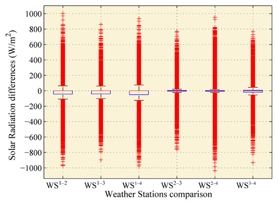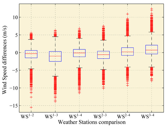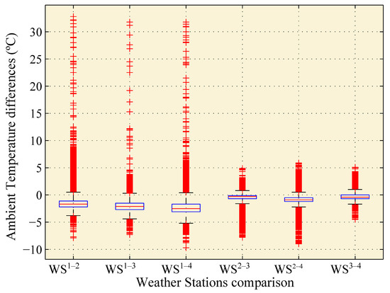 In order to show these type of errors, Figure 7 represents the variability of the weather conditions along the line through a box plot with the differences between each weather station.