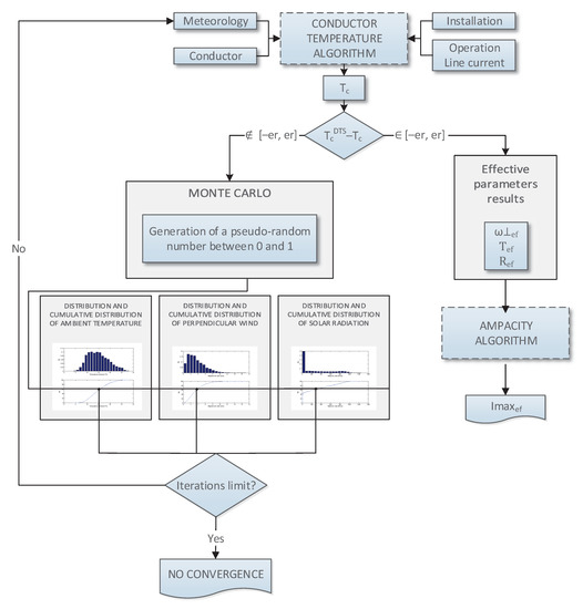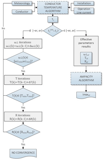 In the case convergence is achieved, the effective meteorological values will be the inputs of the ampacity model. Figure 11 summarizes the proposed methodology.