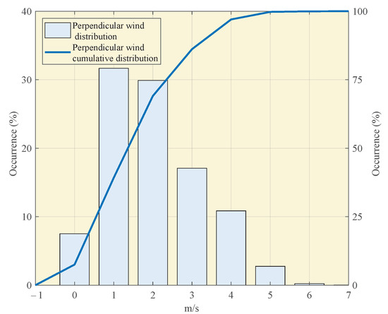 Distribution function and cumulative distribution function of perpendicular wind for 7 days.