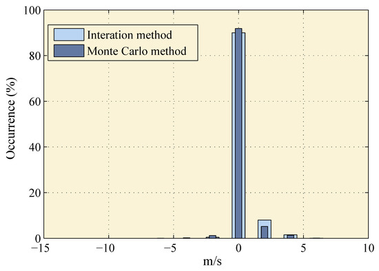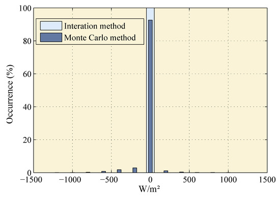 In the case of solar radiation, there are more differences than in previous meteorological variables. Figure 18 shows that the iteration method obtains slightly better results than the Monte Carlo method, with differences close to 0 W/m in 100% and 90% of the cases, respectively.