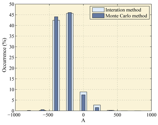 Other important parameters for the optimal selection of the procedure are the time of simulation and the iterations required in each algorithm, defined as the average number of iterations. In the case of iteration method, the simulation time was 7.36 min for 55,000 samples, with an average of iterations of 1.58. On the other hand, the Monte Carlo method simulation time was 90.20 min for 55,000 samples, with an average of iterations of 28.80.