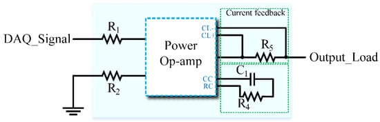 Figure 8 shows the power op-amp, APEX PA-05, used in the instrument that is capable of dissipating 250 watts. The multi-sine reference voltage generated by DAQ is fed to the power operational amplifier.