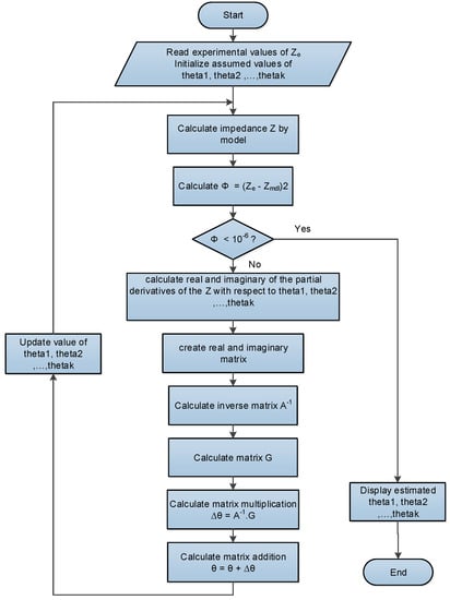 where is the parameter present in the selected electrical equivalent circuit model. These parameters can be estimated by minimizing the function in Equation (20).