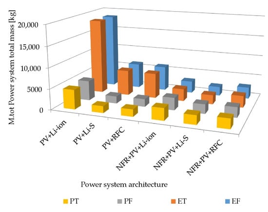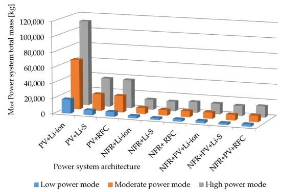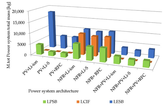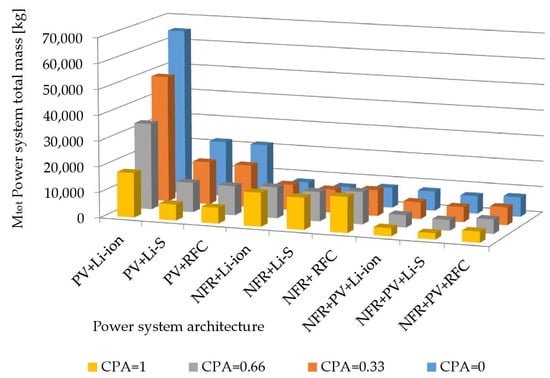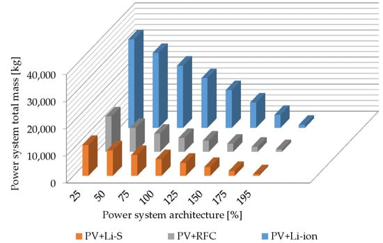We therefore conducted total mass calculations for nine power system architectures for over twenty different sets of parameters. The obtained results were subjected to comparative analysis.