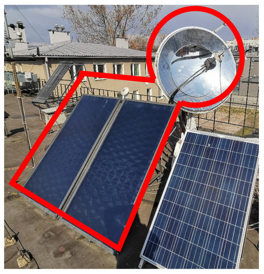 - Figaj, R.; Szubel, M.; Przenzak, E.; Filipowicz, M. Feasibility of a small-scale hybrid dish/flat-plate solar collector system as a heat source for an absorption cooling unit. Appl. Therm. Eng. 2019, 163, 114399. [Google Scholar] [CrossRef]