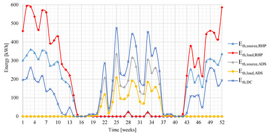 Thermal energy flows of RHP, ADS, and DC, weekly analysis.