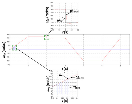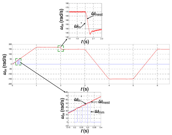 The estimated value of the motor speed is calculated according to Equation (31) [7,8]: