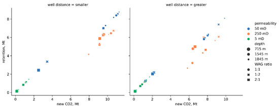 The results showed that if retention was observed relative to the new CO2, then the maximum retention was achieved at the greatest depths (Figure 7).