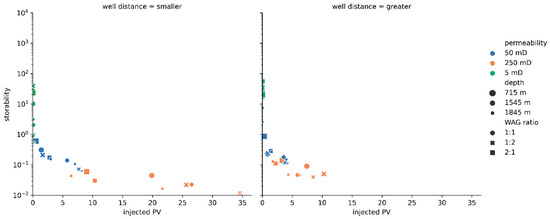 Higher storability was achieved at a greater well distance with less injected pore volumes, and the optimum WAG ratio was 2:1 (Figure 8).