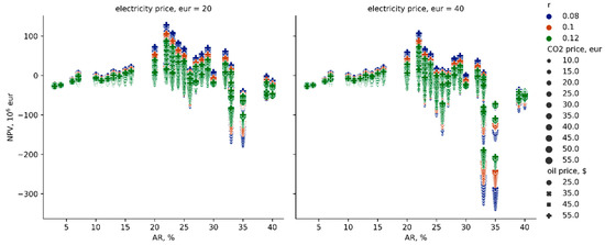 Different input values for prices of oil, price of EUA, and discount rates were considered to cover different earnings scenarios from more pessimistic to more optimistic scenarios (Table 4).