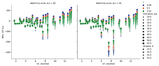 CO2 injection costs in this paper were calculated according to [64], implying five stages of compression, i.e., CO2 injection costs are not fixed but depend on the injected amounts of CO2 and the injection pressure as a base for an estimation of the energy required for compression and charges for that energy.