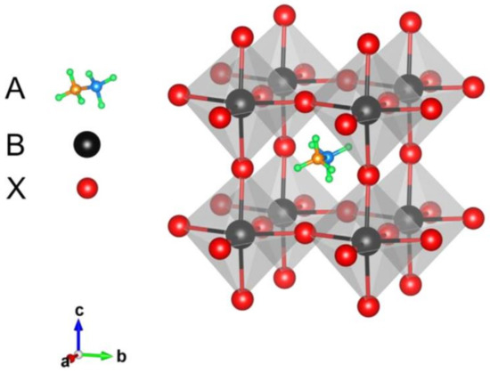 Crystal structure of an organic–inorganic metal halide perovskite. Reproduced with permission from Reference [7].